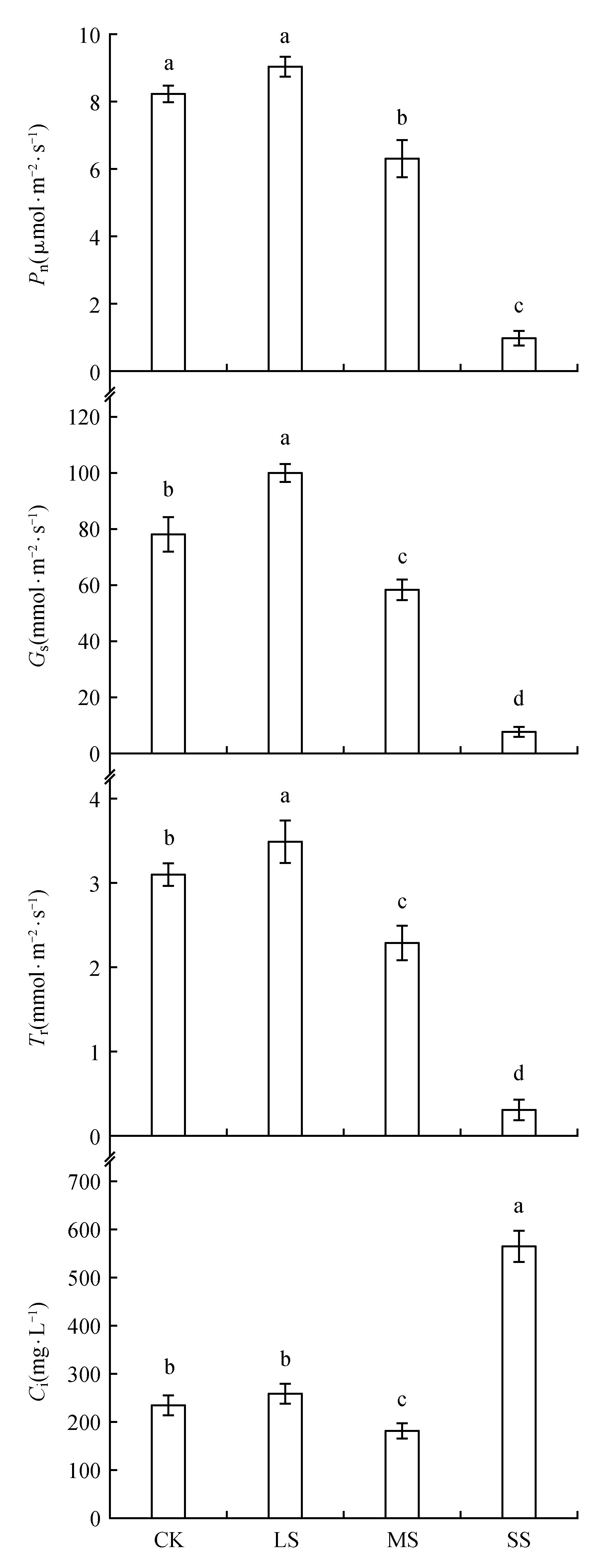 | Fig.2 Influence of drought stress on G.uralensis photos-ynthetic indexes |