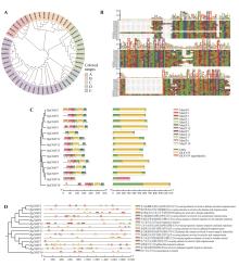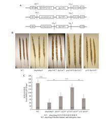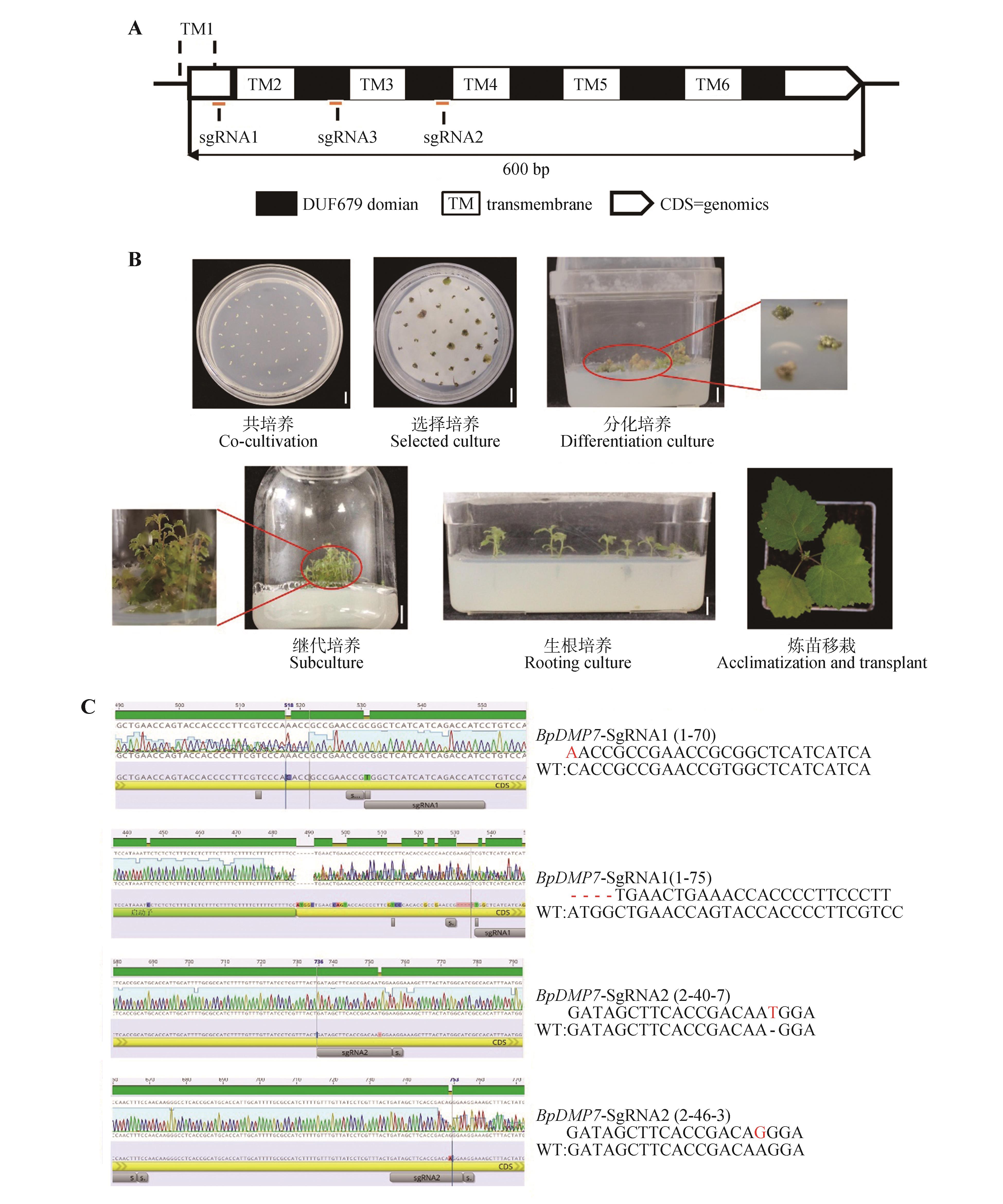 白桦(Betula platyphylla)作为多年生木本植物因生长周期较长、基因型复杂等问题,育种过程中难以获得纯合植株和家系,进而导致育种工作进展较慢。双单倍体(doubled haploid,DH)育种技术是近年来兴起的一种育种方法,只需要两代即可得到纯合的植物家系。因此,DH育种技术可以大大缩短林木育种周期并获得纯合家系,而DMP基因的发现与应用为双单倍育种开辟了一个新的研究方向。该研究旨在通过生物信息学分析揭示白桦BpDMPs基因家族的理化性质、蛋白结构、系统进化、基因结构、染色体分布及其在白桦生长发育过程中潜在的功能;通过表达模式分析鉴定该基因家族中具有单倍体诱导功能的白桦DMP基因,并通过拟南芥(Arabidopsis thaliana)回补试验验证基因功能。生物信息学分析结果显示:在白桦中,DMP基因包含14个基因家族成员,分布在6条染色体上;系统发育分析表明,BpDMPs基因家族中14个基因分属5个分支;对启动子顺式作用元件的预测分析表明,BpDMPs基因家族的启动子中包含生长发育、激素代谢、胁迫响应等相关的反应元件。qRT-PCR结果显示,BpDMPs在白桦各组织中表达水平差异较大,其中,BpDMP2BpDMP7在雄蕊中表达量较高,拟南芥回补试验证明,BpDMP7基因可以回补拟南芥dmp8dmp9突变体籽粒败育的表型。为进一步验证BpDMP7诱导白桦产生单倍体,用CRISPER/Cas9基因编辑技术将该基因进行靶向敲除并获得突变体植株。该研究为进一步研究白桦BpDMPs基因家族的功能和调控机制提供了基础信息,并为理解这些基因在植物生长发育及环境适应过程中扮演的角色提供了新的视角。