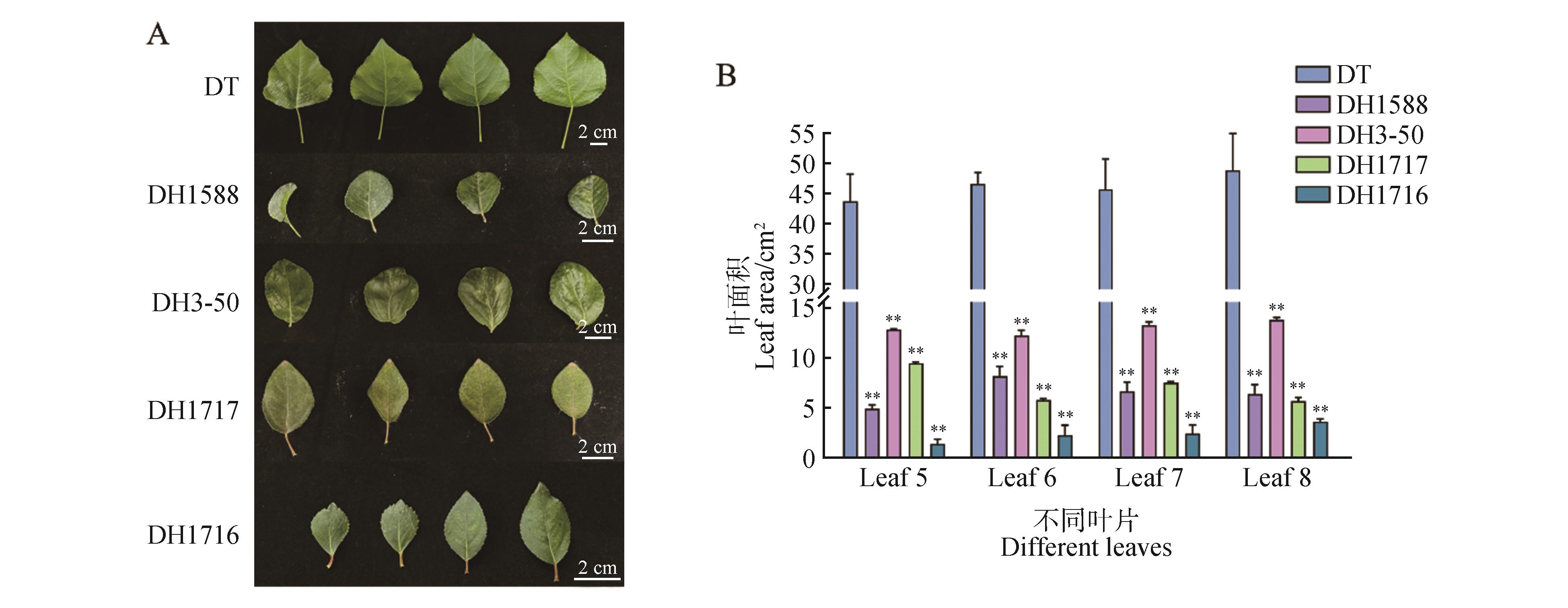 亲本及双单 倍体无性系 DT and DH lines | 第5片叶 The fifth leaf | 第6片叶 The sixth leaf | 第7片叶 The seventh leaf | 第8片叶 The eighth leaf | ||||||||