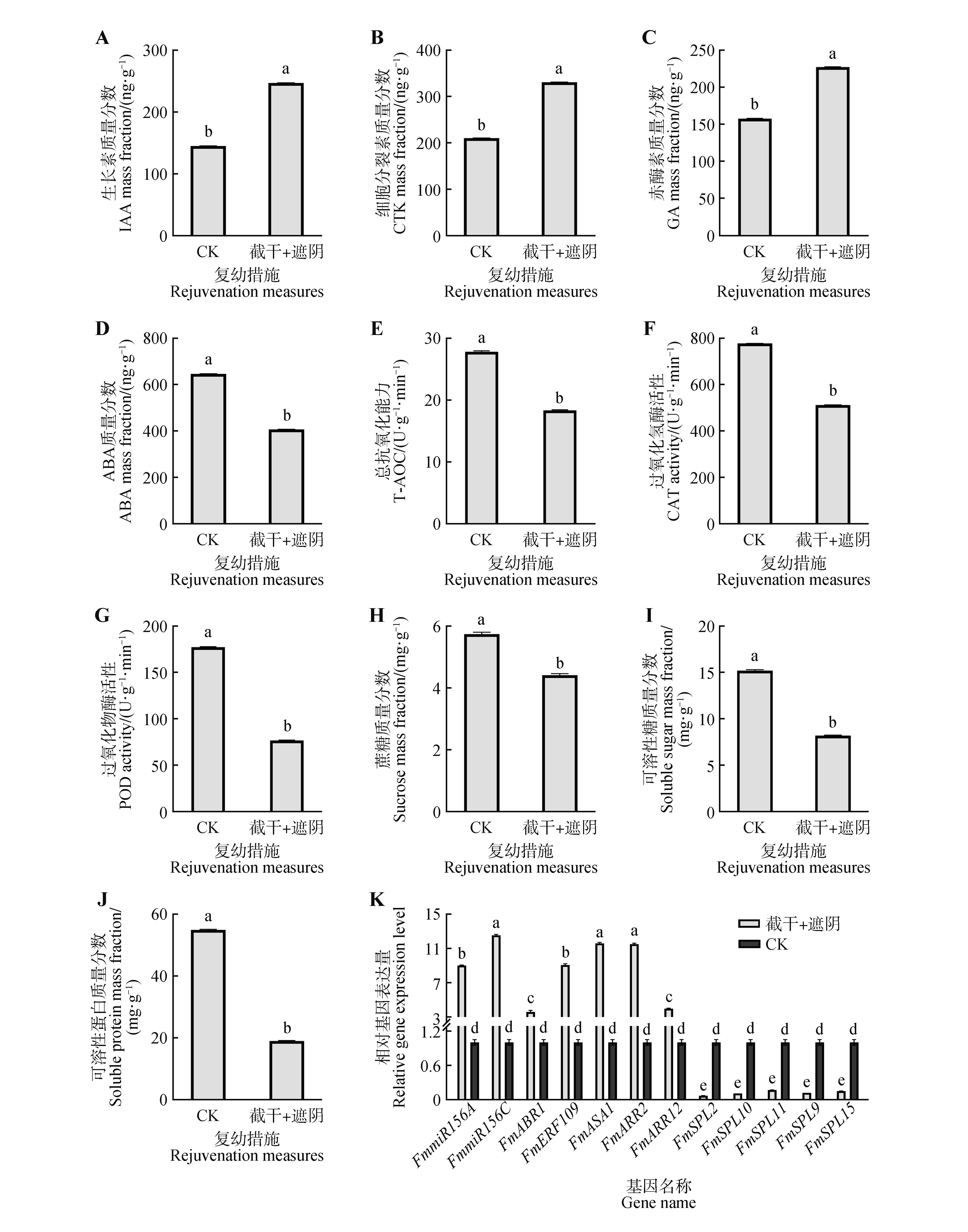 截干+遮阴 Trunk cutting+shading | 82.42 | 61.11 | 5.67 | 6.00 | 0.99 | 1 |